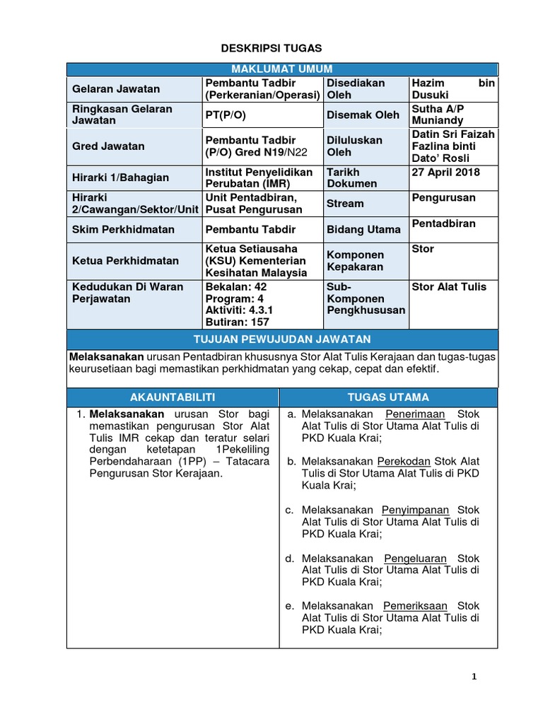 Contoh Deskripsi Tugas Pembantu Tadbir Perkeranian Operasi Pdf